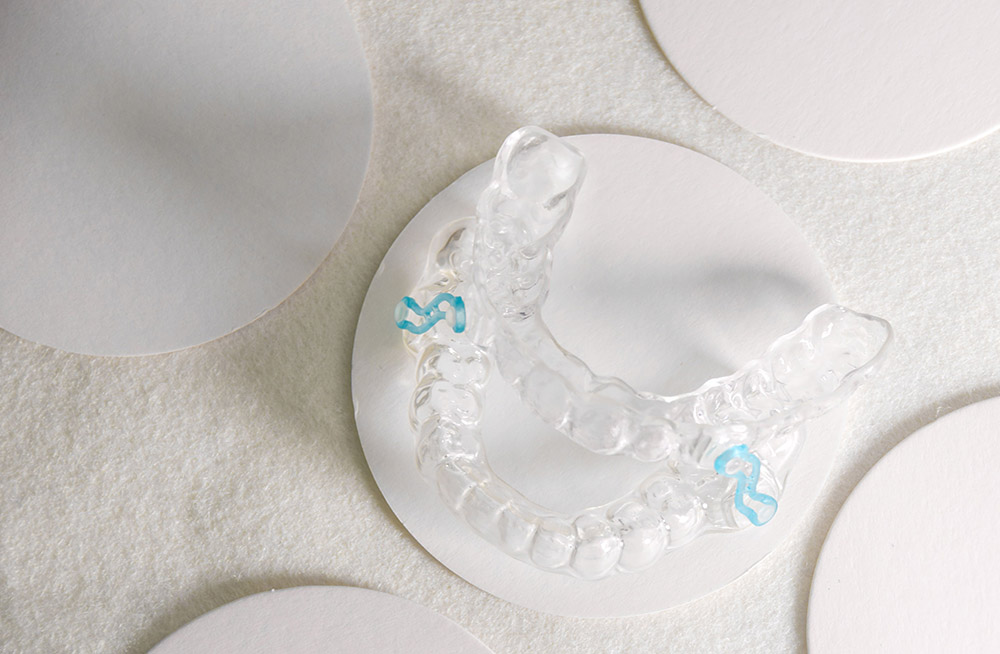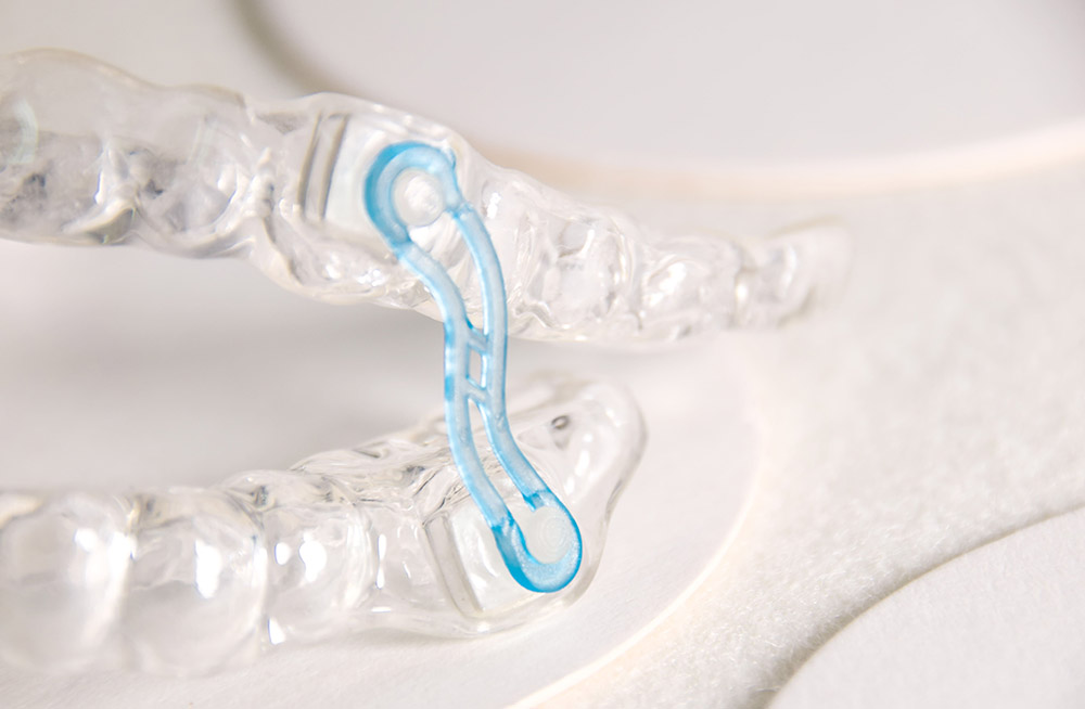 為了同時兼顧固位的強度與配戴的舒適度,外部使用相對較硬的材質進行固位,內部採用較柔軟的舒適材質,形成外硬內軟的特殊設計,讓下顎可以自由的向側方移動。